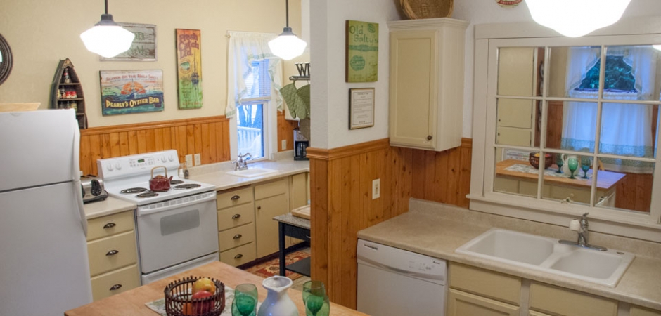 Nestled inside of Guest House One, this large suite features a bedroom, full private bath, sitting room with fireplace and a spacious kitchen. This is a perfect space for a couple or small family and, using the sleeper sofa, can accommodate up to three people. Note that the Suite is not a separate house but a part of Guest House 1. It comprises one of that house's 3 bedrooms and 3 baths and includes the kitchen and sitting room. When the Suite is occupied, the rest of the house is closed and not available for use.